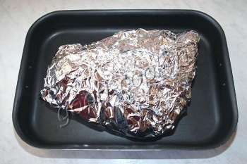 При желании для получения запечённой корочки можно отогнуть фольгу,